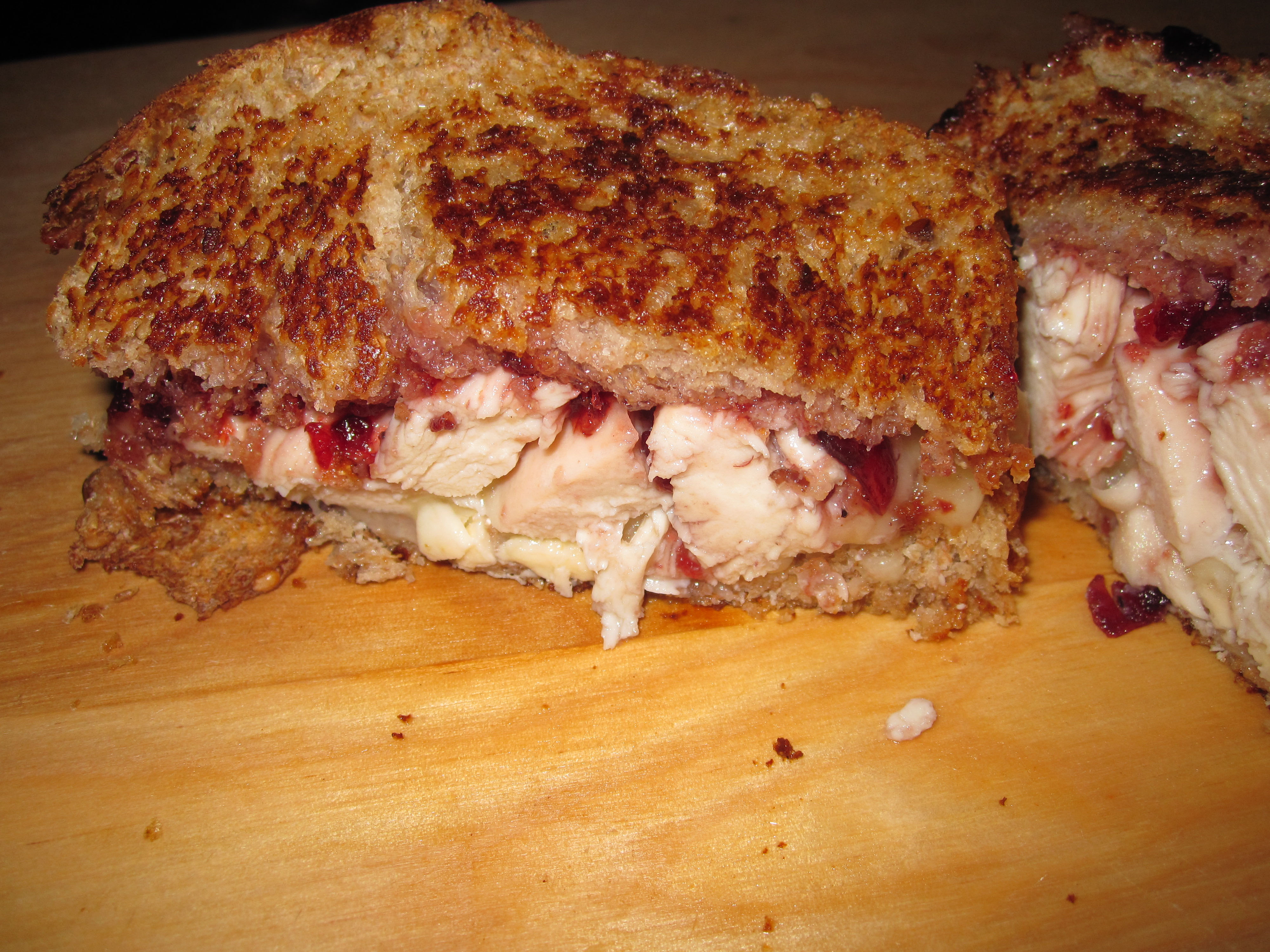 When I was studying abroad in New Zealand, I would sit in my favorite coffee shop, Governor’s, write in my journal and listen to ben harper (come on, we all did it). But what I really loved there– was the tastiest lunch– a hot caramel (like hot milk and caramel) and a chick, cran & brie sandwich. Chicken, cranberry and brie is a very popular combination in NZ– available everywhere, even as a pizza topping. But, my favorite way to have it– is in a toasty sandwich.