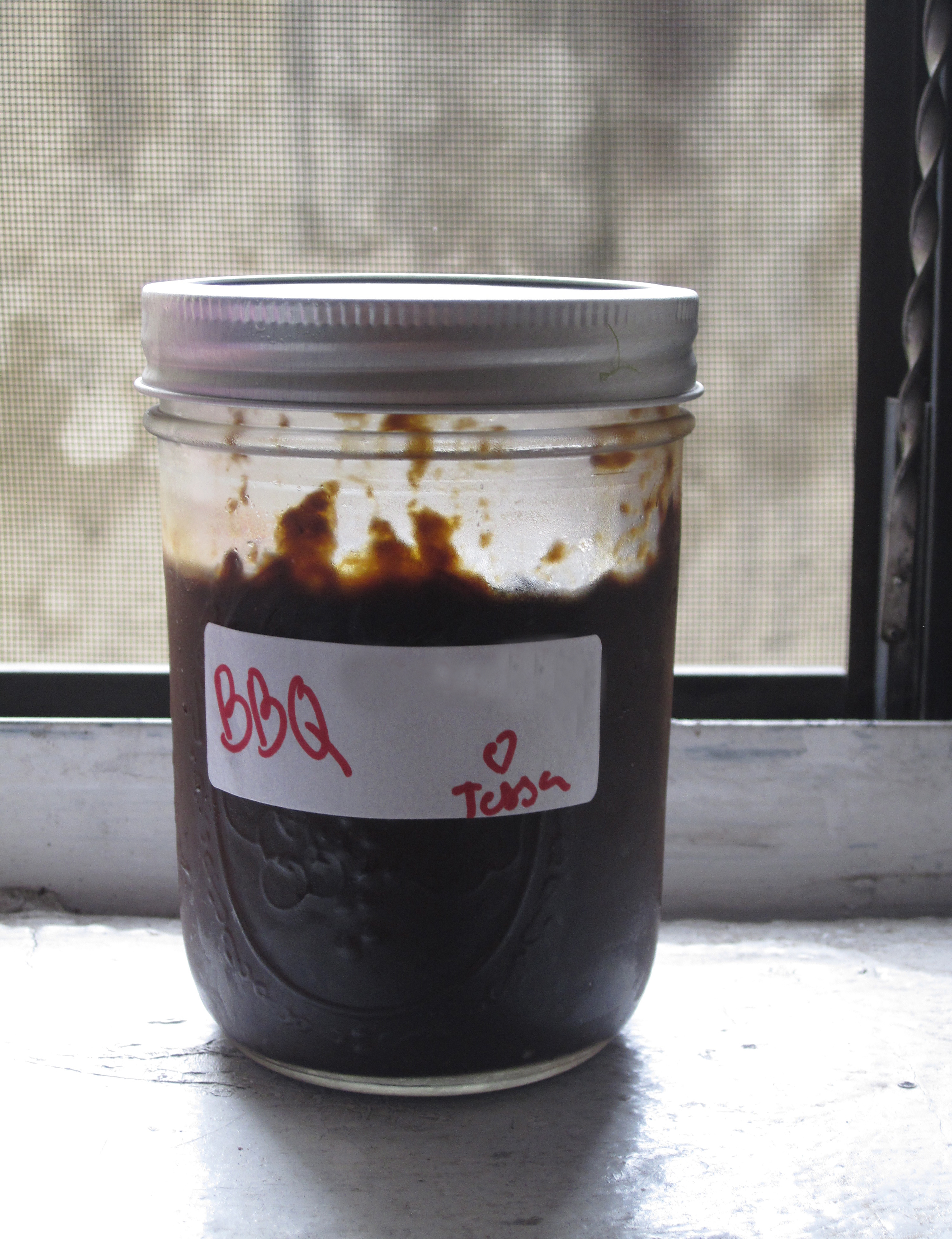 11 MayBelieve me when I tell you that homemade bbq sauce is worth the effort. I take that back, it is not so much effort as a list of ingredients you might have to buy. I remember buying them all the first time I made it– and it seeming absurd to spend so much more on ingredients than just buying a bottle of sauce.But it turned out so damn good- and they all super useful things to have around- and I have made this recipe again and again. Makes a nice summer time bbq gift. The sauce is an America’s Test Kitchen Recipe. It is both sweet and spicy. Pare down on cayenne if you don’t like heat.