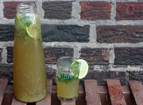 Happy Birthday Alice!!! A delicious minty refreshment for a backyard bbq– to celebrate Alice’s bday and engagement! There are many ways to make a mojito. And the basis for this one actually came from some googling that led me to the website “Musing of a housewife.” She says the secret is mint simple syrup. I totally agree and thought that infusing the rum would be a nice touch too. This way– all the mintyness is already in the drink– and the crushed and muddled mint and ice in the glass can just be for extra effect (and presentation). If you don’t have time to do the rum infusing- you can just go w. the mint simple syrup. The mint infusions give the brownish hue.